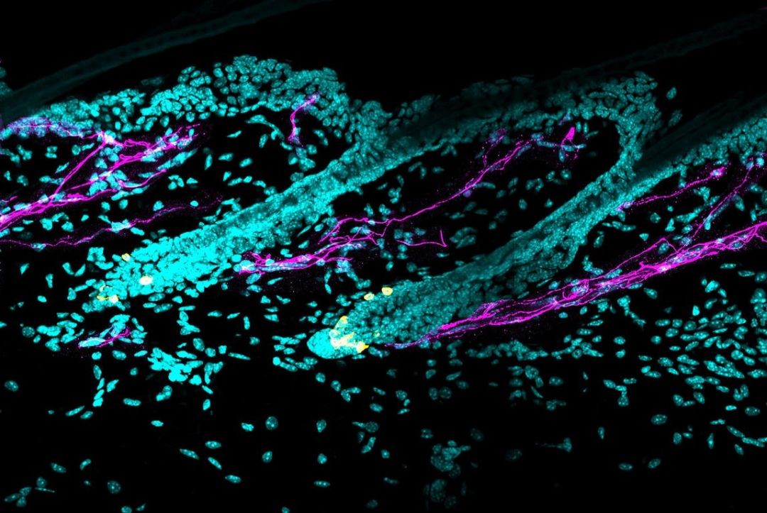 7. 复染核:滴加DAPI避光孵育5min,对标本进行染核,PBST 5min×4次洗去多余的DAPI;