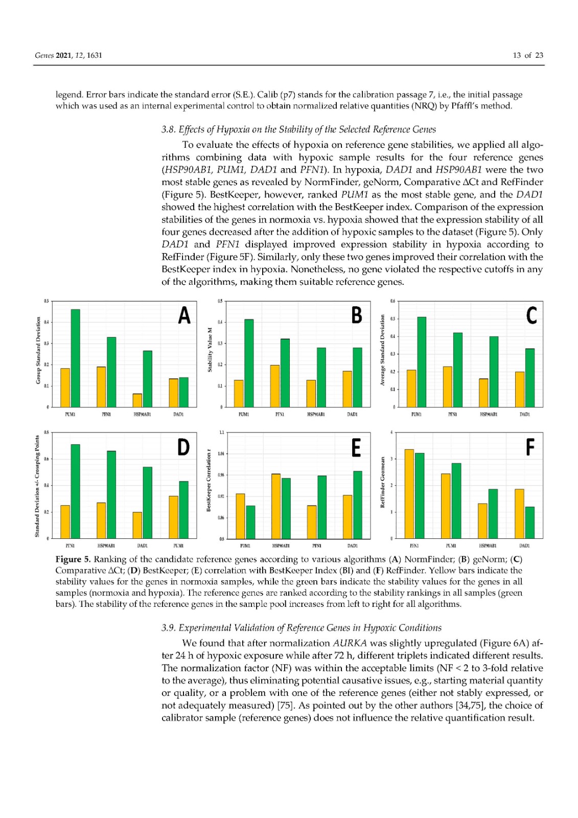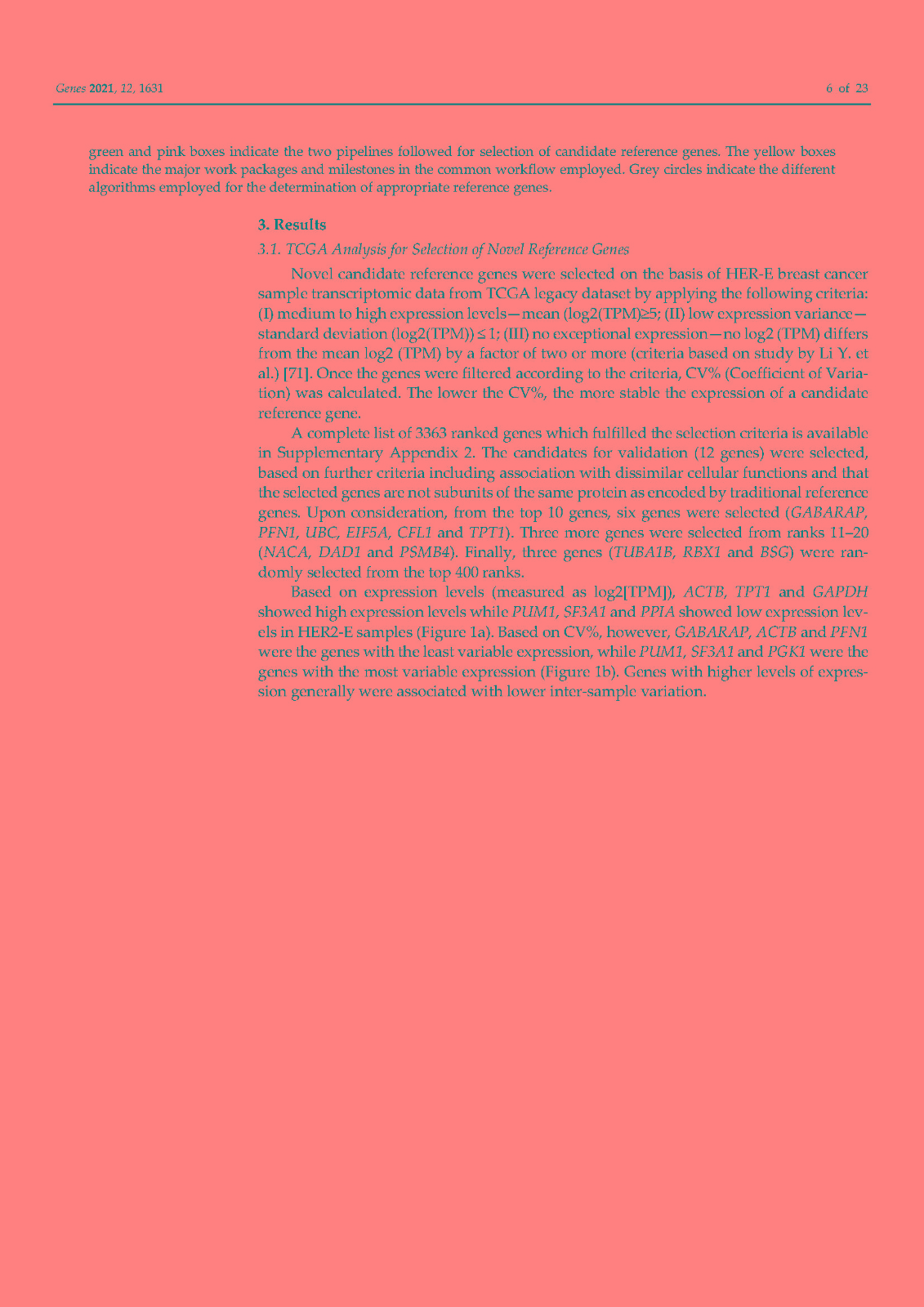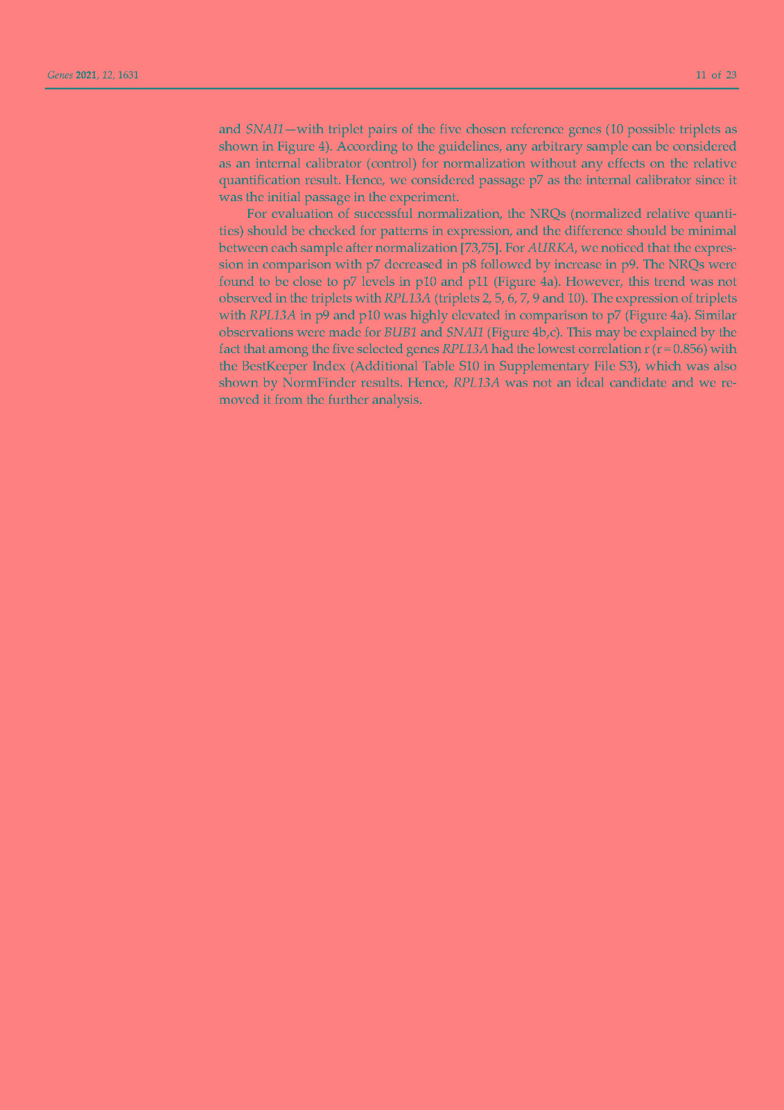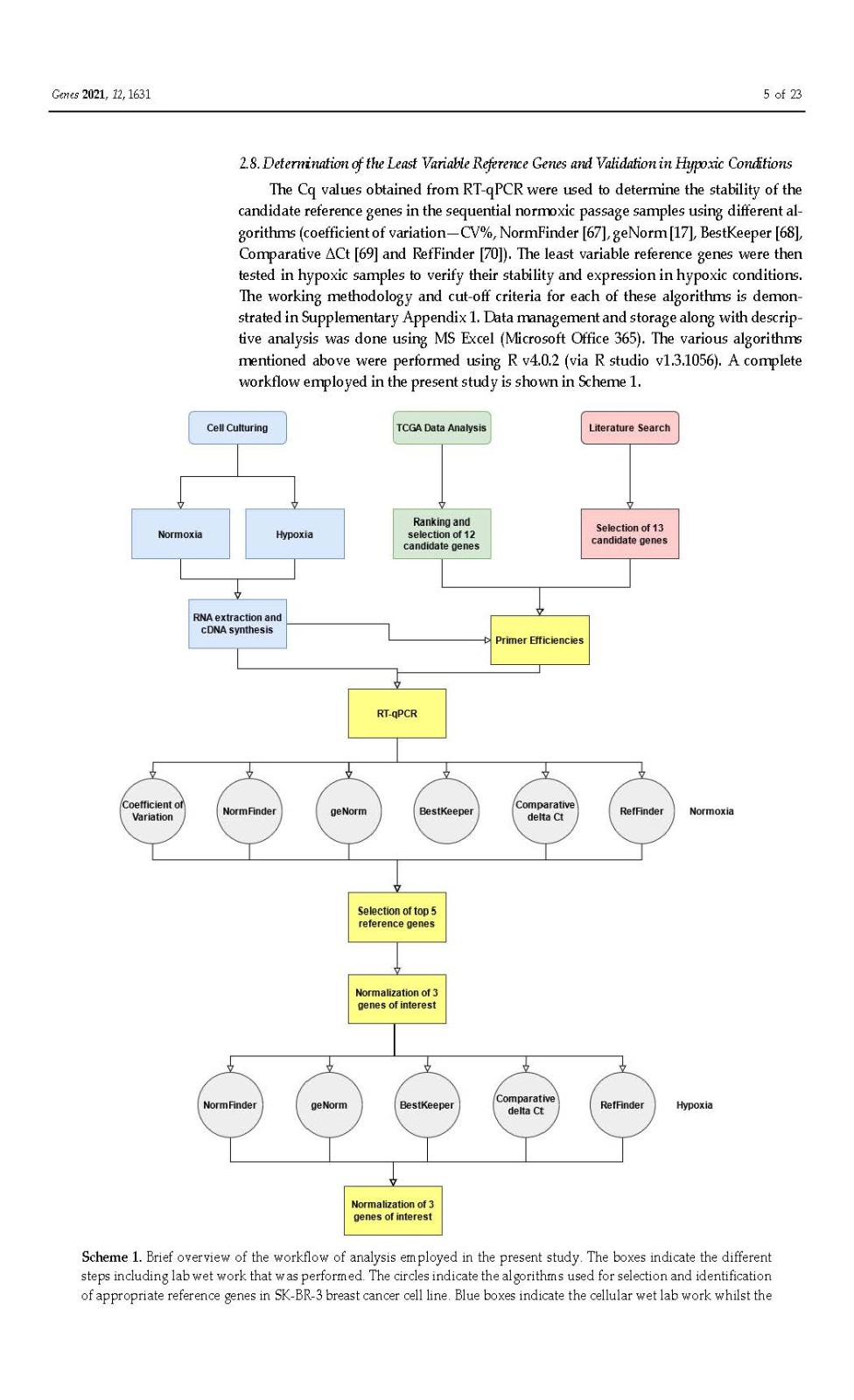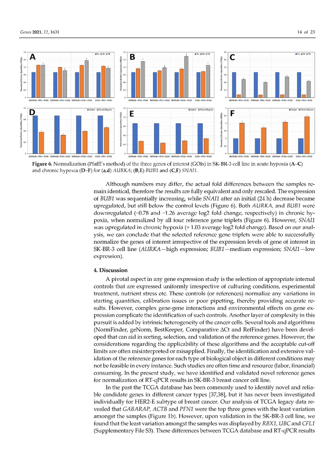 使用内部对照或参考基因 (RG) 对基因表达进行标准化已成为标准化逆转录定量聚合酶链反应 (RT-qPCR) 技术变化的首选方法。传统上,ACTB和GAPDH尽管文献中的证据不鼓励使用它们,但已被用作参考基因。因此,在本研究中,我们在富含 HER2 的乳腺癌细胞系 SK-BR-3 中鉴定并研究了新的参考基因。对来自 TCGA 数据库的 82 个 HER2-E 乳腺癌样本的转录组数据进行了分析,以确定十二个具有稳定表达的新基因。此外,还分析了文献中的 13 个 RG。在两个平行培养物 S1 和 S2 中以及在急性和慢性缺氧条件下,使用各种算法研究了候选基因的表达变化超过 5 次连续传代 (p)。最后,选择最稳定的 RGs 并验证其在常氧和缺氧条件下三个感兴趣基因 (GOI) 的表达正?;?。我们的结果表明HSP90AB1、DAD1、PFN1和PUM1可用于三个(三联体)的任意组合,以优化 SK-BR-3 细胞系中检测内和检测间的基因表达差异。此外,我们不鼓励使用传统的 RG(ACTB、GAPDH、RPL13A、RNA18S和RNA28S)作为 SK-BR-3 细胞系中 RT-qPCR 的内部对照。