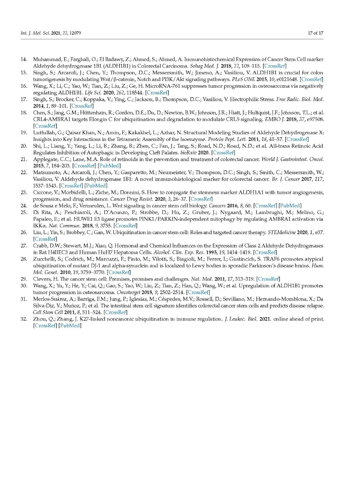 各种综合分析研究已经确定了许多与肿瘤形成和恶性肿瘤相关的分子。最近,糖基磷脂酰肌醇 (GPI) 锚定蛋白 (GPI-80 也称为 VNN2) 已被确定为与肿瘤化疗耐药相关的分子之一 [ 3 ]。GPI-80,在人类中性粒细胞中鉴定 [ 4 ],据报道可调节中性粒细胞粘附和迁移 [ 4 ]。此外,GPI-80 与 β2 整合素共定位于静息中性粒细胞上,并在中性粒细胞迁移过程中集中在伪足上 [ 5]]?;谡庑┕鄄?,GPI-80 被认为是一种调节嗜中性粒细胞粘附的分子。然而,不仅在伪足上检测到 GPI-80,还在分泌囊泡中检测到 GPI-80 [ 6 ],并且可溶性 GPI-80 从活化的中性粒细胞中释放出来 [ 7 ]。除了中性粒细胞,造血干细胞也表达 GPI-80。因此,GPI-80被认为是造血干细胞的标志物。