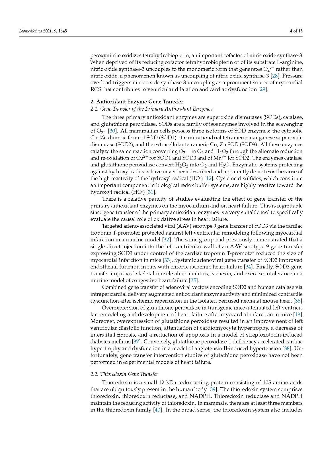 Heart failure is the cardiovascular epidemic of this century and has a rather dismal prognosis [124]. The development of gene transfer strategies that result in an improved cellular redox state remains an important research area in the generation of new treatments for heart failure.